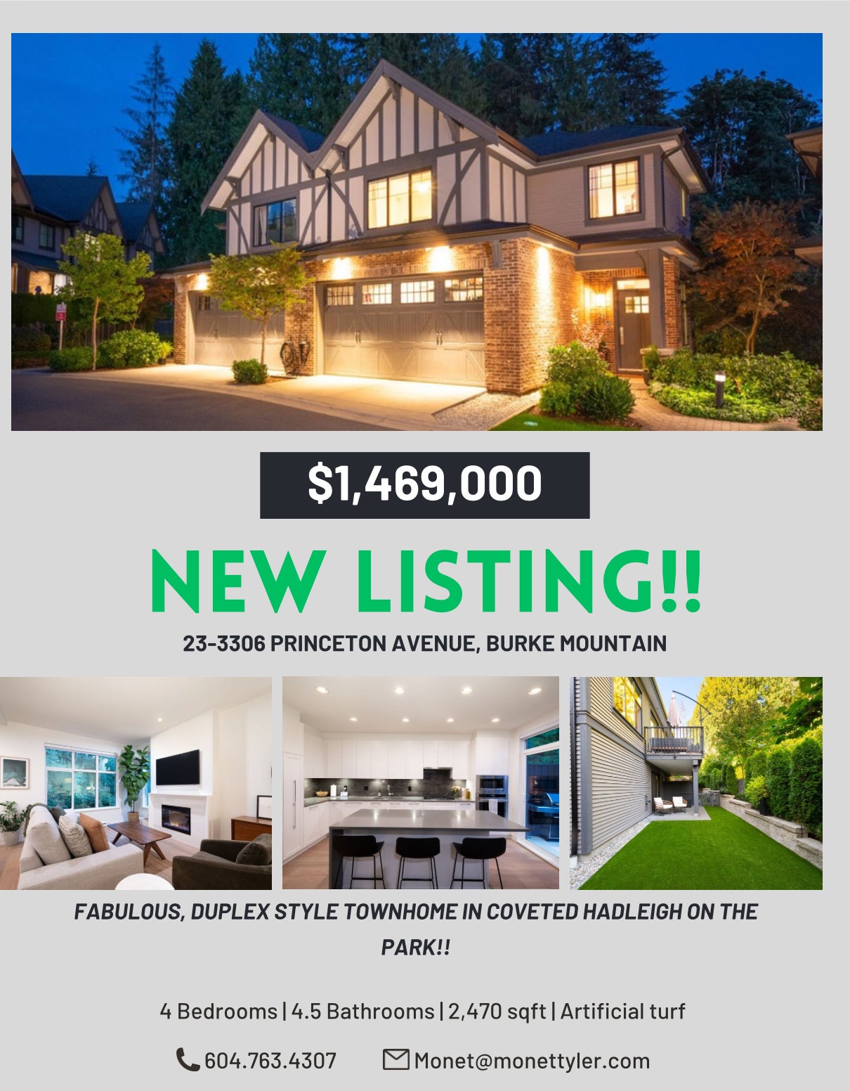 This immaculate home boasts privacy and serenity as it's nestled against the greenbelt...walk out to trails from your own fenced yard! Upscale, Tudor inspired complex boasts a great location across from Pioneer Park. The main level features engineered white oak flooring, a gorgeous Chef's kitchen with an entertaining island, stone counters, custom white cabinetry, tiled backsplash, and upscale, panelled appliances. The oversized windows bring in abundant natural light and lovely greenbelt views! Upstairs are three generous bedrooms, each with their own ensuite! The Primary Bedroom has a huge walk-in closet and a gorgeous ensuite with a soaker tub. The lower level is bright and offers a large Rec Room, a large bedroom with walk-in closets and a full bathroom. Walk out to your private yard, enhanced with new landscaping and artificial turf! An incredible lifestyle awaits!